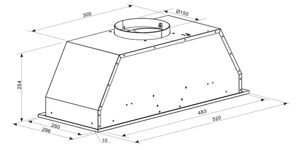 Стандартный отвод у вытяжек 100мм, также в комплектации есть переходник на 150 мм.