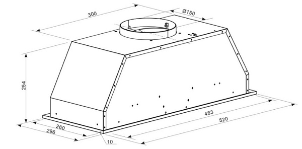 Стандартный отвод у вытяжек 100мм, также в комплектации есть переходник на 150 мм.
