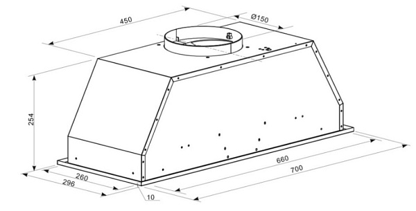 Стандартный отвод у вытяжек 100мм, также в комплектации есть переходник на 150 мм.
