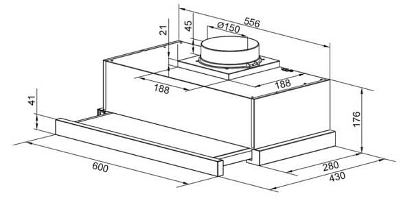 Стандартный отвод у вытяжек 100мм, также в комплектации есть переходник на 150 мм.