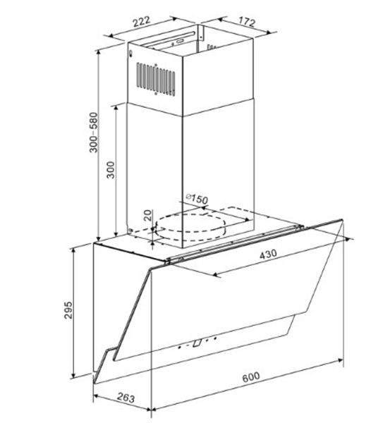 Стандартный отвод у вытяжек 100мм, также в комплектации есть переходник на 150 мм.