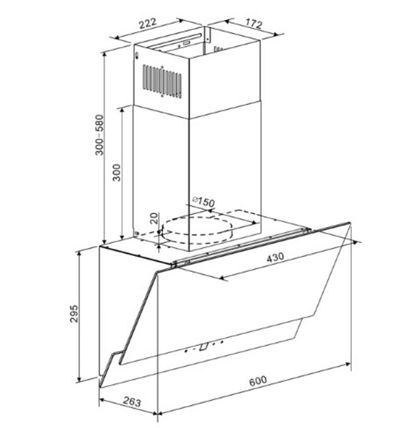 Стандартный отвод у вытяжек 100мм, также в комплектации есть переходник на 150 мм.