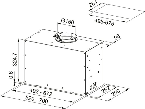 Монтаж на расстоянии от 450 мм от электрической и 650 мм от газовой варочной поверхности