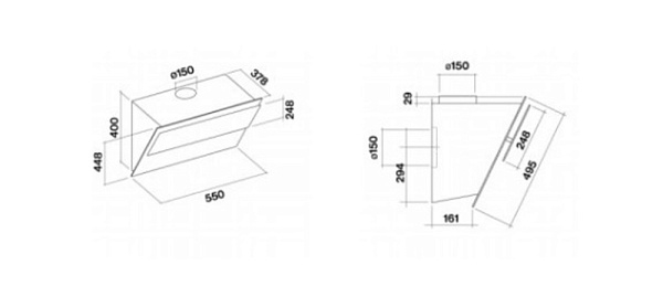 Стандартный отвод у вытяжек 100мм, также в комплектации есть переходник на 150 мм.