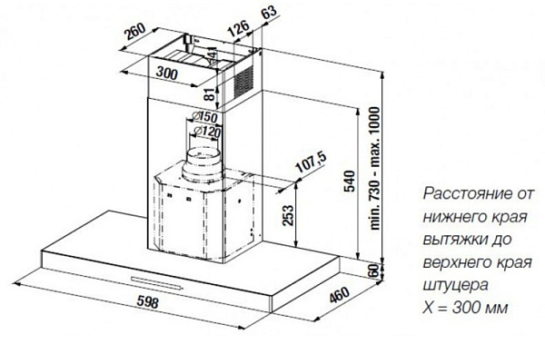 Стандартный отвод у вытяжек 100мм, также в комплектации есть переходник на 150 мм.