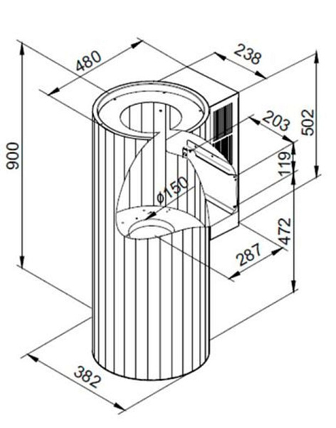 Стандартный отвод у вытяжек 100мм, также в комплектации есть переходник на 150 мм.