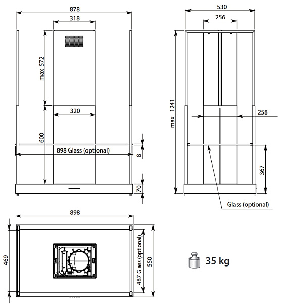 Плюсы: Светодиодная подсветка гарантирует комфорт эксплуатации. Интенсивный режим поможет быстро очистить воздух на кухне. Дополнительно можно приобрести подвесную (CEUT90.E10#I4F) и стеклянную (KACL.064) полки.