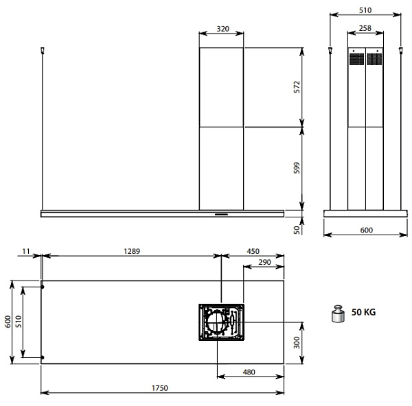 FALMEC DESIGN LUMEN ISOLA STEEL 175 SX вытяжка нержавеющая сталь