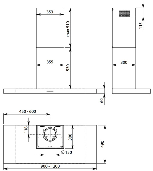 Корпус из нержавеющей стали в черном цвете придает устройству современный и элегантный вид. Т-образная форма вытяжки делает ее универсальной для установки в любом интерьере. Светодиодное освещение с цветовой температурой 3200 К создает приятную атмосферу и обеспечивает отличное освещение рабочей зоны.