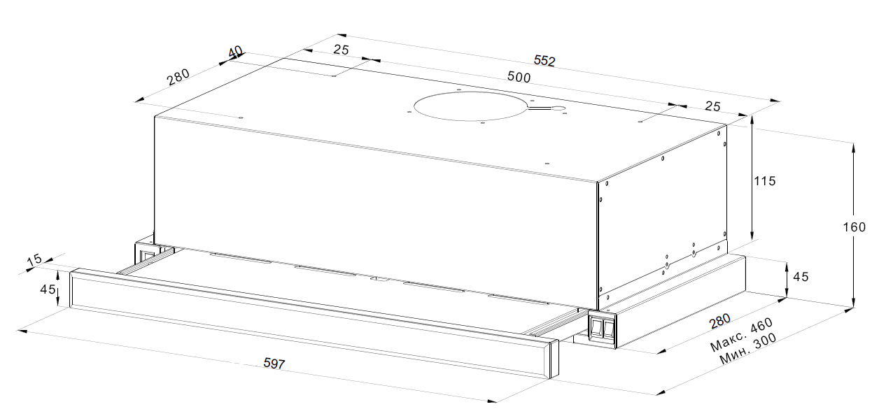 Три скорости работы помогают подобрать нужный режим — от тихого фонового проветривания до максимального отвода воздуха. Уровень шума на максимальной скорости составляет 48 дБ, что позволяет комфортно находиться рядом. Управление — механическое кнопочное: простое и понятное с первого использования.