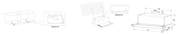 Стандартный отвод у вытяжек 100мм, также в комплектации есть переходник на 150 мм.