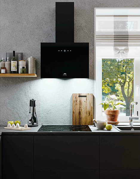 Простое сенсорное управление интуитивно понятно и не требует подробного изучения инструкции. Небольшой дисплей на панели отображает время или выбранную скорость, которых всего 9. В зависимости от сценария использования, выбирается подходящая скорость. Первые несколько идеально подходят при ежедневном приготовлении пищи, а последние при активном парообразовании в помещении.