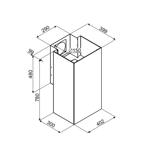 Стандартный отвод у вытяжек 100мм, также в комплектации есть переходник на 150 мм.