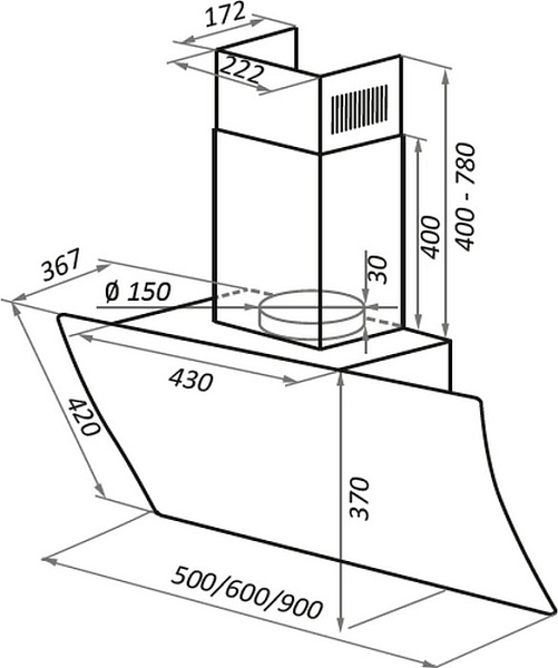 Стандартный отвод у вытяжек 100мм, также в комплектации есть переходник на 150 мм.