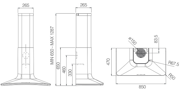 Стандартный отвод у вытяжек 100мм, также в комплектации есть переходник на 150 мм.