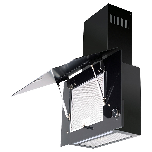 Одной из ключевых особенностей является электронное управление с поворотным регулятором с подсветкой, которое делает настройку скорости и освещения интуитивно понятной и приятной. Вытяжка оснащена тремя уровнями мощности и таймером, позволяющим задать автоматическое отключение.