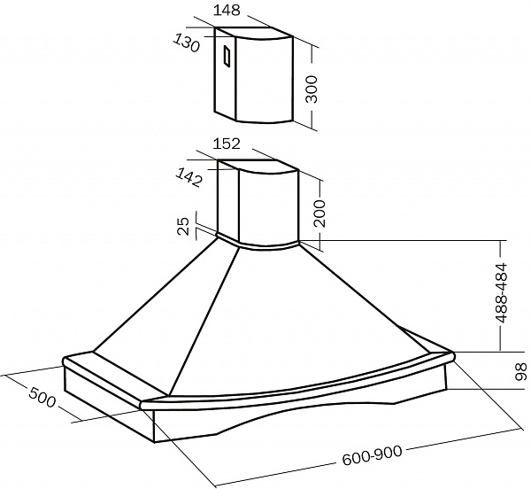Система фильтрации реализована через три металлических жироулавливающих фильтра. Они эффективно задерживают частицы жира, сохраняя чистоту внутри корпуса и легко снимаются для мытья. Кроме того, предусмотрена возможность установки угольных фильтров D6C, которые обеспечивают дополнительную очистку воздуха при рециркуляции. Диаметр воздуховода 150 мм способствует свободному и мощному потоку воздуха, повышая общую эффективность устройства.