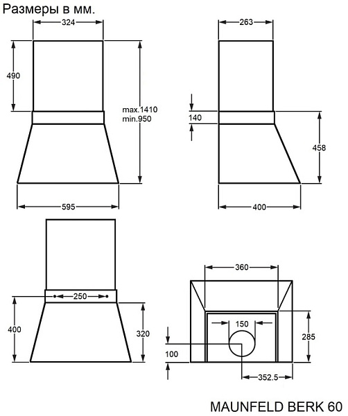 MAUNFELD BERK 60 Built In вытяжка антрацит