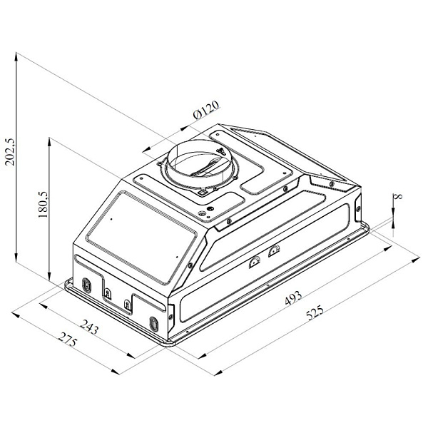 Двигатель с медной обмоткой обеспечивает стабильную производительность 1050 м³/ч в режиме отвода и устойчивую работу при регулярных нагрузках. Три скорости и кнопочное управление делают эксплуатацию простой. LED-подсветка 2×1 Вт ярко освещает рабочую зону плиты.