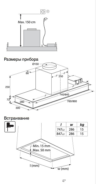 Рабочая зона освещается светодиодными лампами мощностью 3,9 Вт, которые дают яркий и равномерный свет, отличаются долговечностью и низким энергопотреблением. Устройство поддерживает два режима работы — отвод и циркуляцию воздуха, а комплект фильтров, включая металлический жировой, легко обслуживается и подходит для мойки в посудомоечной машине. Индикатор загрязнения фильтра и таймер повышают удобство эксплуатации, а уровень шума не превышает 58 дБ, обеспечивая комфортную атмосферу на кухне.