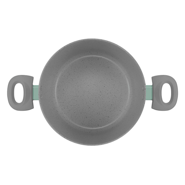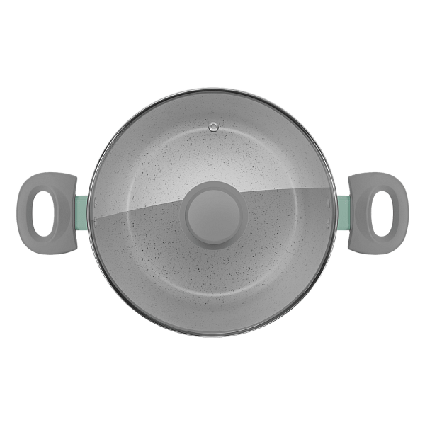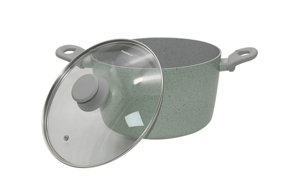 Мраморное антипригарное покрытие абсолютно инертно — это гарантирует, что в пищу не попадет никаких вредных примесей и веществ даже при воздействии очень высоких температур. Поверхность посуды не подвержена загрязнениям и не впитывает запахи.