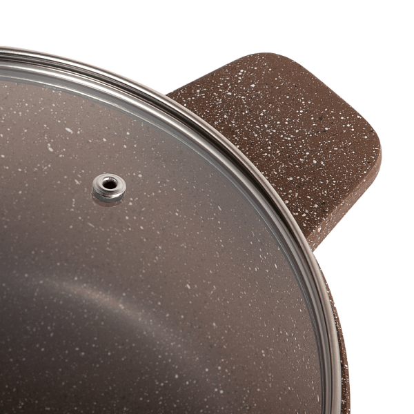 Пять слоев безопасного антипригарного покрытия, не меняет вкус и аромат еды. Кастрюля с эффектным мраморным покрытием и современной ручкой в универсальном цвете, будет отлично сочетаться с любой кухней.