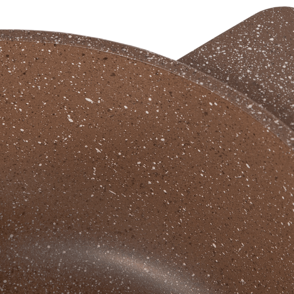 Устойчивое к царапинам, полностью безопасное антипригарное покрытие с эффектом "мрамор", позволяет готовить блюда без использования большого количества масла. Не содержит свинец и кадмий, без PFOA.