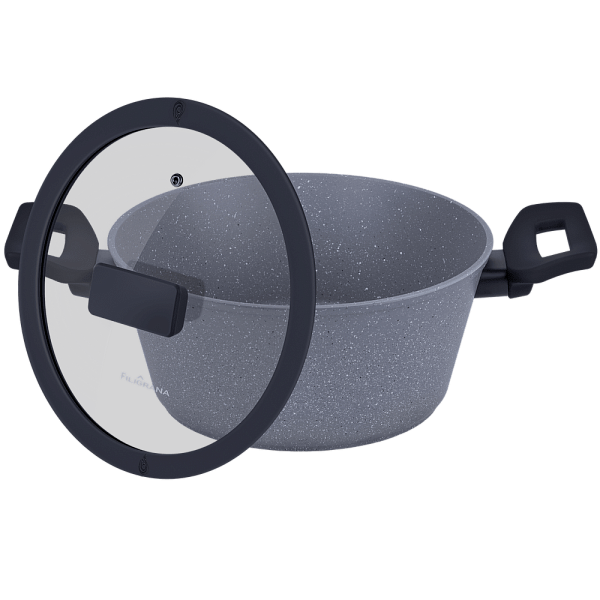 Эргономичные ручки из термостойкого бакелита с покрытием soft-touch не скользят в руке и не нагреваются в процессе приготовления. Плоская трендовая крышка из боросиликатного стекла с паровыпуском и ободком из пищевого силикона.