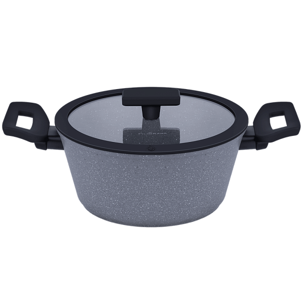 Эргономичные ручки из термостойкого бакелита с покрытием soft-touch не скользят в руке и не нагреваются в процессе приготовления. Плоская трендовая крышка из боросиликатного стекла с паровыпуском и ободком из пищевого силикона.