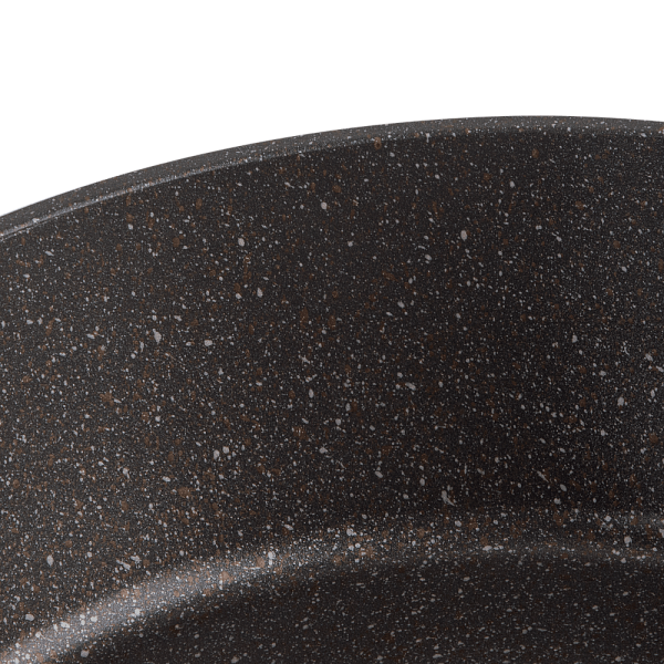 Устойчивое к царапинам, полностью безопасное антипригарное покрытие, позволяет готовить блюда без использования большого количества масла. Не содержит свинец и кадмий, без PFOA.