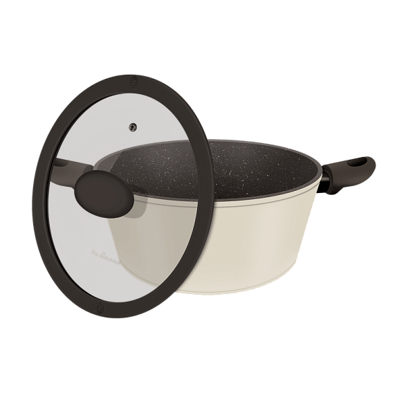 Эргономичные ручки из термостойкого бакелита с покрытием soft-touch не скользят в руке и не нагреваются в процессе приготовления. Плоская трендовая крышка из боросиликатного стекла с паровыпуском и ободком из пищевого силикона.