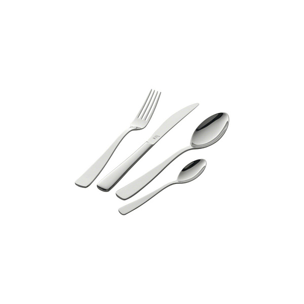 В комплекте: 6 столовых ножей, 6 столовых вилок, 6 столовых ложек, 6 кофейных ложек, 6 вилок для торта.