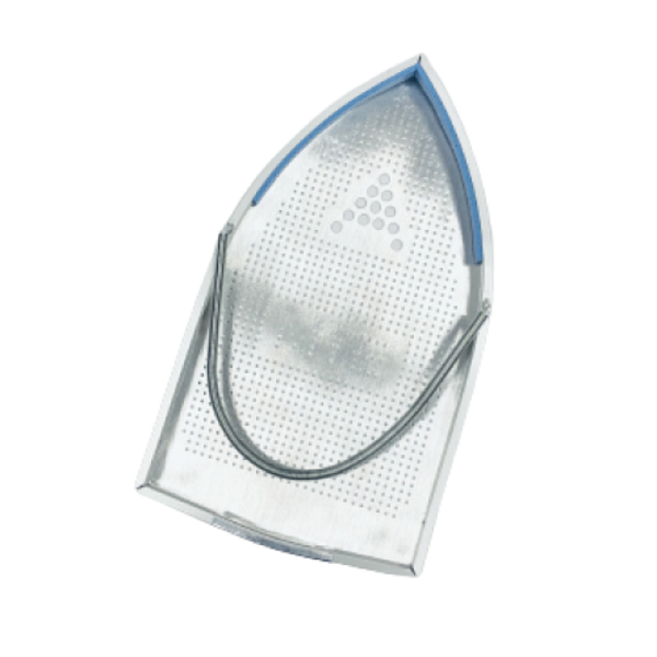 Насадка на подошву утюга профессионального утюга выдерживает температуру до 4500 С и защищает все виды ткани, включая самые деликатные, от сгорания и появления пятен, предотвращает появление складок и блеска на брюках и деликатных тканях