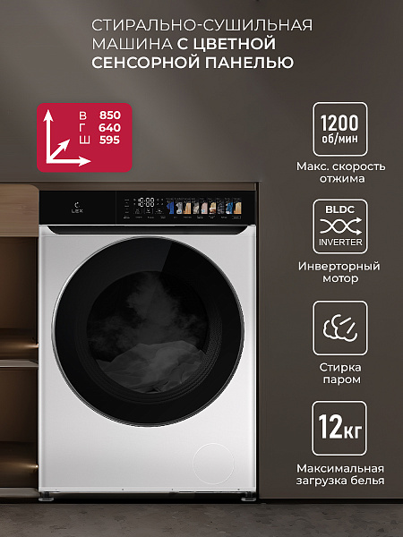 Загрузка до 12 кг для стирки и до 8 кг для сушки: отлично подходит для больших семей.