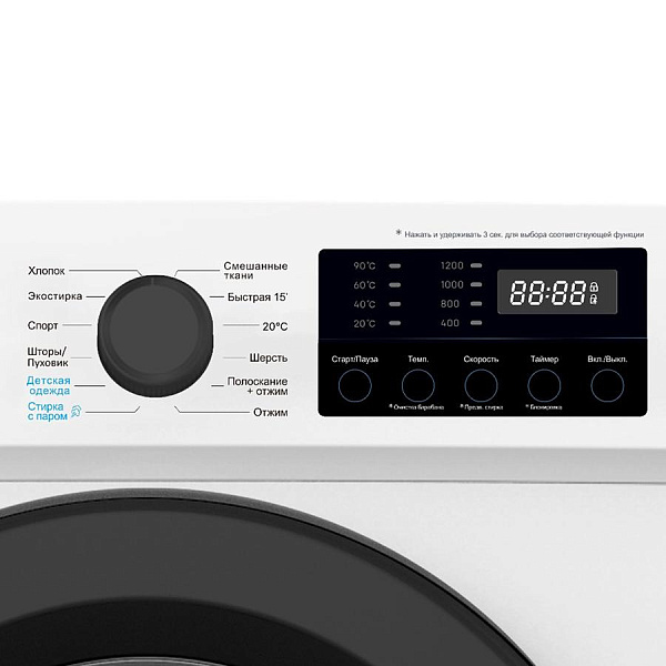 Машина оснащена 12 автоматическими программами, 4 режимами и ручными настройками для бережного ухода за одеждой различных типов: от деликатной стирки шерсти, шелка, пуховиков и штор до интенсивной стирки хлопчатобумажных тканей.