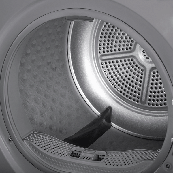 Благодаря постоянному движению барабана, вещи равномерно обрабатываются со всех сторон. В сушильных машинах функция освежение паром очень удобна и отлично поможет, если вещи пропахли дымком от воскресного сидения у костра, или залежались в шкафу.