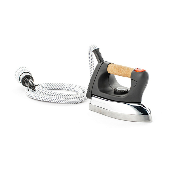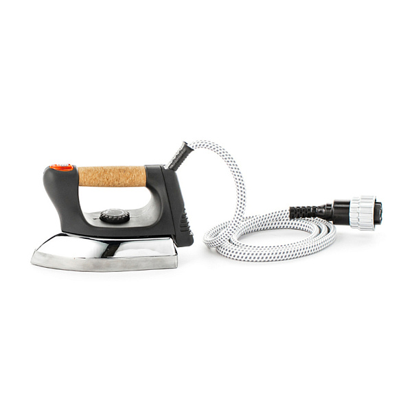 Паровой утюг имеет толстую металлическую подошву, которая обеспечивает утюгу стабильную высокую жаропрочность. Ручка из пробкового материала мягкая, не скользит в руке и не нагревается.