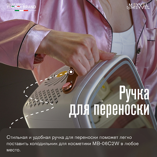Бьюти-холодильник Meyvel MB-06C2W, поддерживающий температурный диапазон +8 до +10 °C, – это элегантное и функциональное устройство, которое станет незаменимым помощником в хранении и охлаждении косметических продуктов.