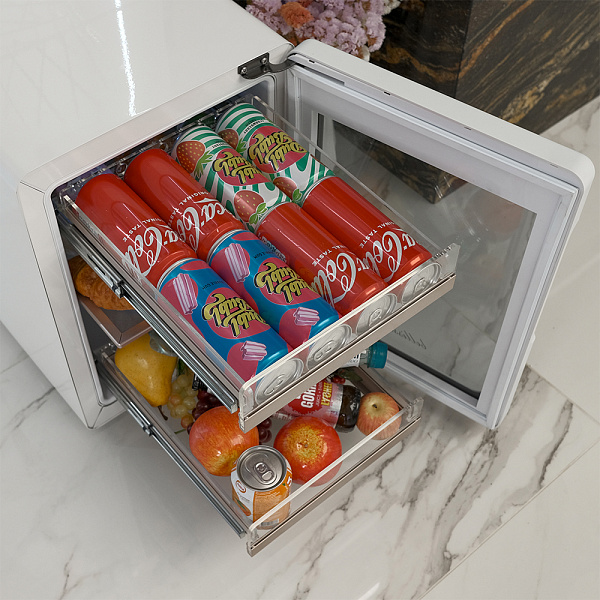 Вот только часть того, что можно хранить в этом современном мини холодильнике со стеклянной дверцей: