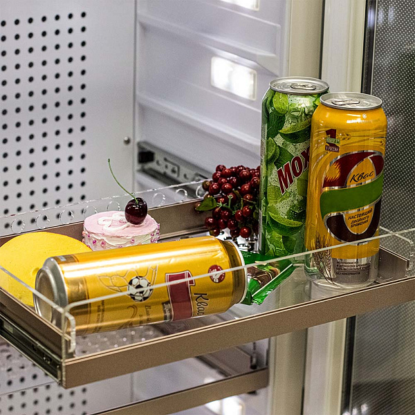 Так как он имеет стеклянную дверь и панорамное освещение, в нём можно не только хранить, но и демонстрировать товары или продукты и использовать его как холодильник-витрину, что несомненно повысит продажи, при использовании его в коммерческих целях.