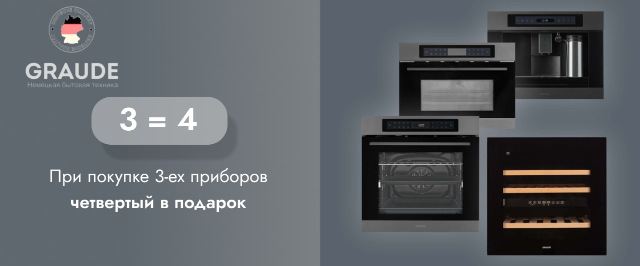 Покупая комплекта техники Graude, состоящий из трех приборов разных категорий, вы получаете четвертый со скидкой 100% !