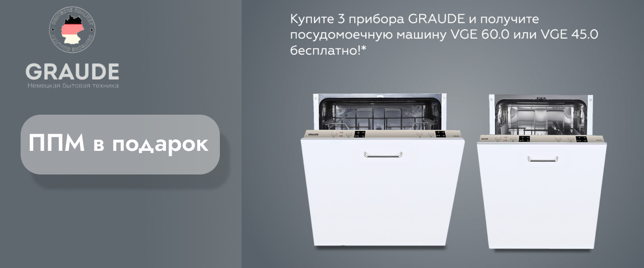 При покупке 3-ех приборов → Посудомоечная машина за 1 рубль (4-й прибор в комплекте)