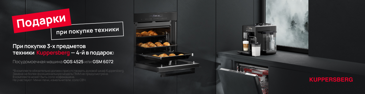 При покупке комплекта техники Kuppersberg из 3-х предметов в подарок 4-й предмет на выбор: