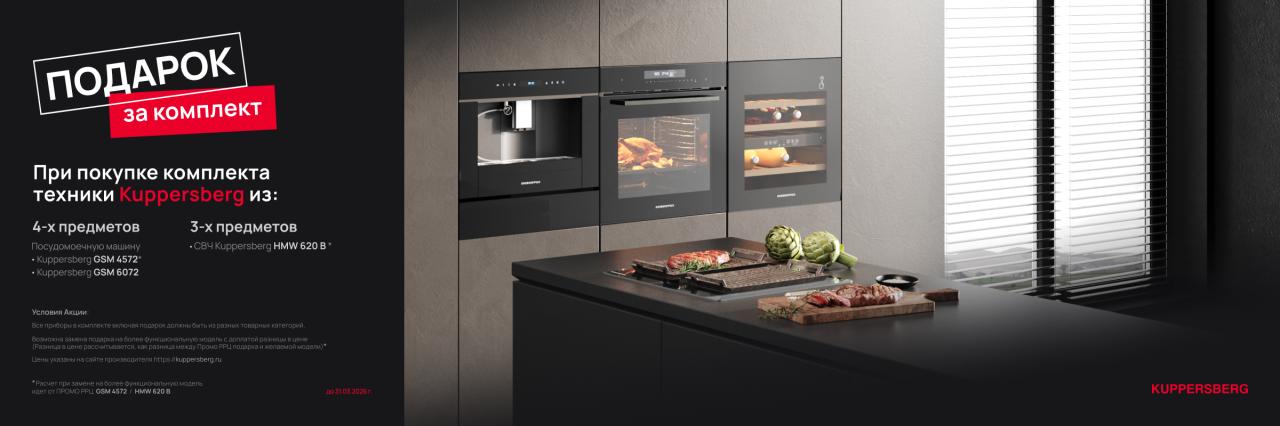При покупке комплекта техники Kuppersberg из 3-х предметов в подарок 4-й предмет :