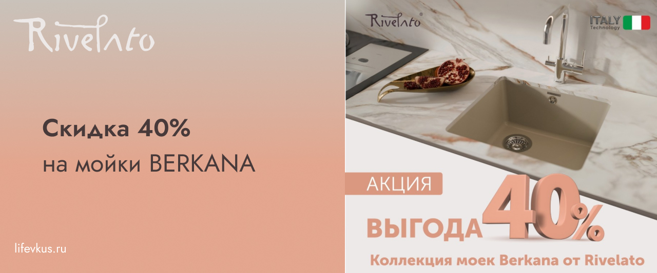 Специальная цена на все модели моек RIVELATO коллекции: BERKANA 25, BERKANA 35, BERKANA 45, BERKANA 50 во всех цветах.